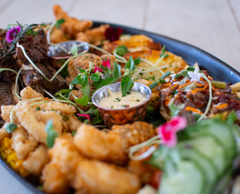 Our multi-functional complex is situated on the beachfront of the Southern side of the main beach in Jeffreys Bay. It has breathtaking views over the bay, the distant mountains and one of the several world-famous surf breaks in Jeffreys Bay namely Kitchen Windows. An extensive menu comprising of seafood, beef, poultry, traditional local dishes and several exotic dishes. Furthermore, our extensive wine list includes wines and spirits from numerous South African wine estates and regions that are made to satisfy and tantalize your palate.