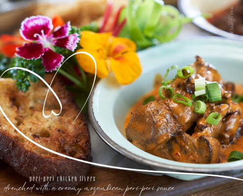 Most of our food is prepared on open fires, to give an authentic home cooked South African flavour to our dishes. We offer a mouth-watering array of seafood and other traditional South African dishes.