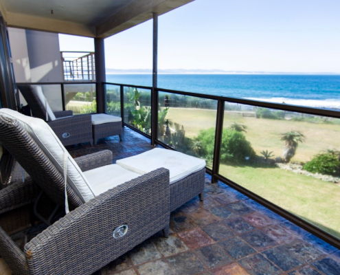 - Ideal communal area downstairs with braai facilities, full kitchen and a beautiful view overlooking Supertubes Beach in Jeffreys Bay.